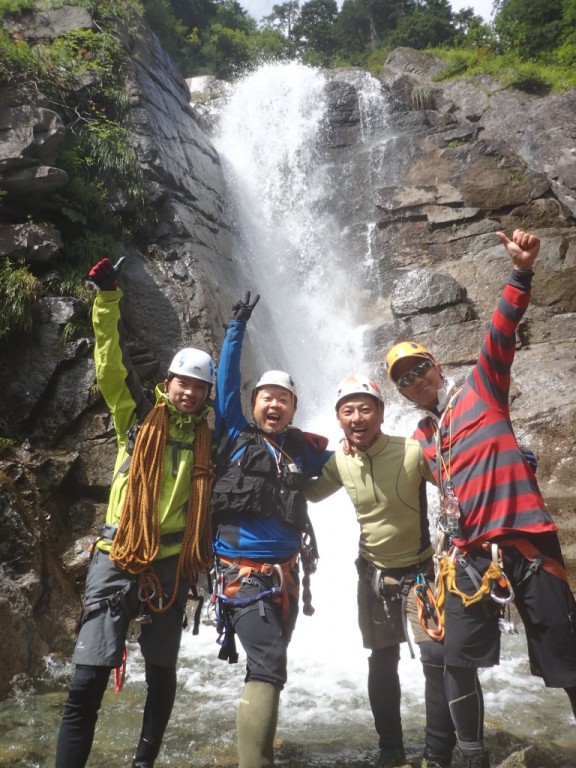 中アの沢 中御所谷 敗退! 投稿者: yonechan2014/09/022020/05/07活動報告 日暮しの滝 8月30日・31日と1泊2日で南アの沢を遡行する予定でしたが、土砂崩れで道路が通行止めとなっていたために、急遽予定を変更し、日帰りで中アの中御所谷へ行ってきました。ガスの中での登攀となり、時間もかかってしまったため、途中で遡行を断念しました。少し晴れ間が見えた頃、日暮しの滝をバックにUさんが素晴らしい写真を撮ってくれました。夏の思い出の1コマとなりました。再チャレンジしたいものです。