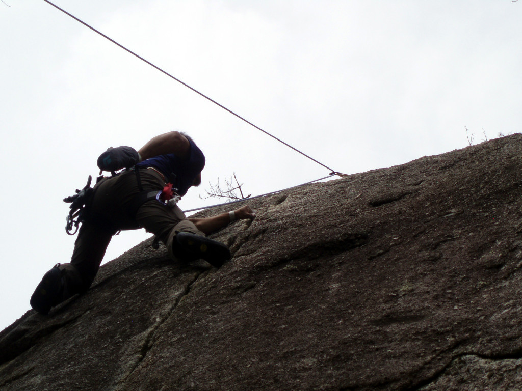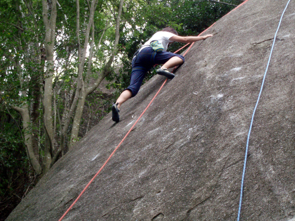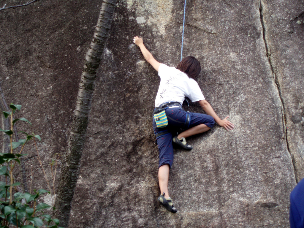 天下峯で練習してきました 投稿者: 過去文書2014/10/132020/05/07活動報告 日曜日に天下峯へ行ってきました。 まずは、ウォーミングアップでルート36(5.9)をトップロープで皆さん一撃。 K上さんルート36(5.9)オンサイト そのあと、すぐ上のクラックの課題をたっぷり楽しみました。 とても気持ちの良い天気でのんびりできました。 「雨蛙」を下から(5.11a)行くT中さん、ムーブが美しい!! 「雨蛙」をトラバースして(5.10)行くY澤さん。さすがに上手い。 同じくF田さんも。このあと見事RP。 K上さんも果敢に「雨蛙」にチャレンジ、なかなか上手い。手強いライバルが現れました。 私(TY田)は「おたまじゃくし」(5.8)と戯れてました。