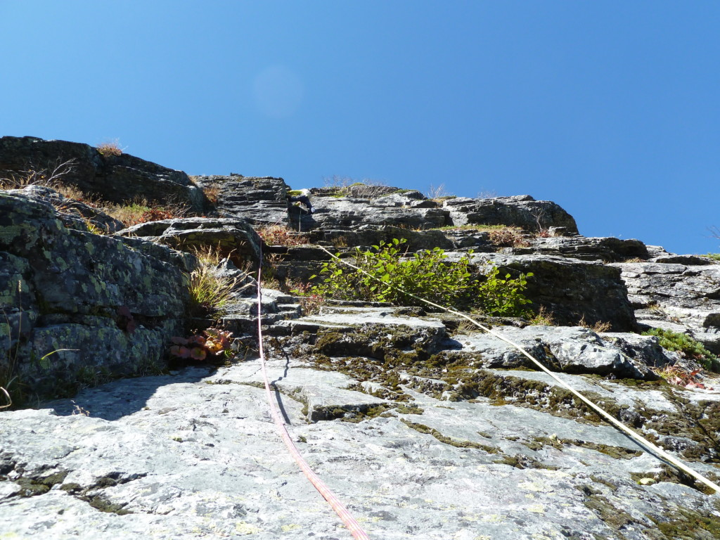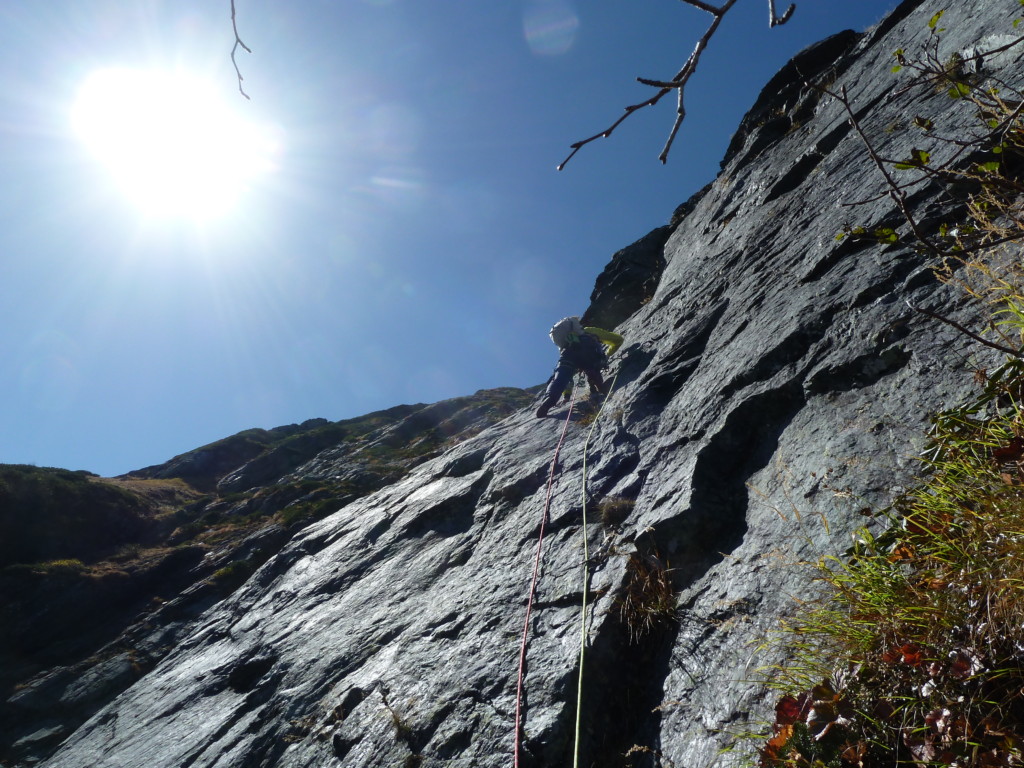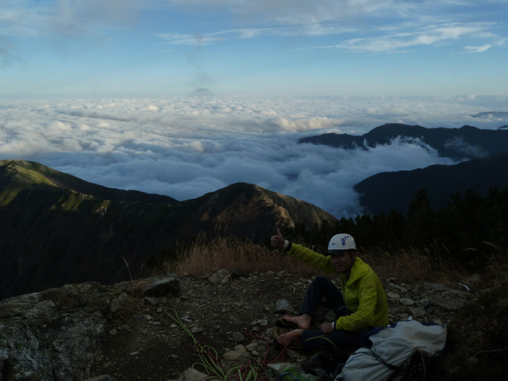 ピラミッドフェースの登攀は、なかなかスリリングで ”落ちるかもしれんで頼むわっ” と言うのが何度かありましたが、なんとかフォールする事なく無事に登り切りました。