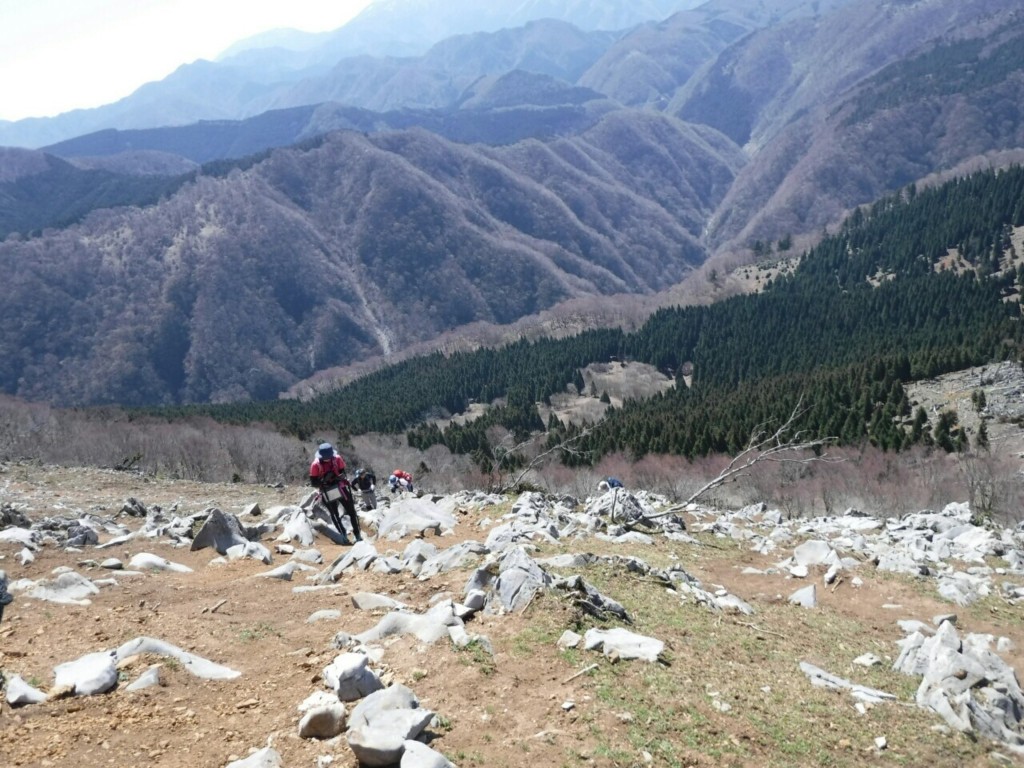 今畑登山口(こちらも廃村)から笹峠までしっかりした踏み後の登山道を登ります。笹峠からは近江展望台までの南西尾根は石灰岩で滑りやすい急斜面が続きますが、高度を増すにつれ琵琶湖や鈴鹿の山々の景色が現れてきます。