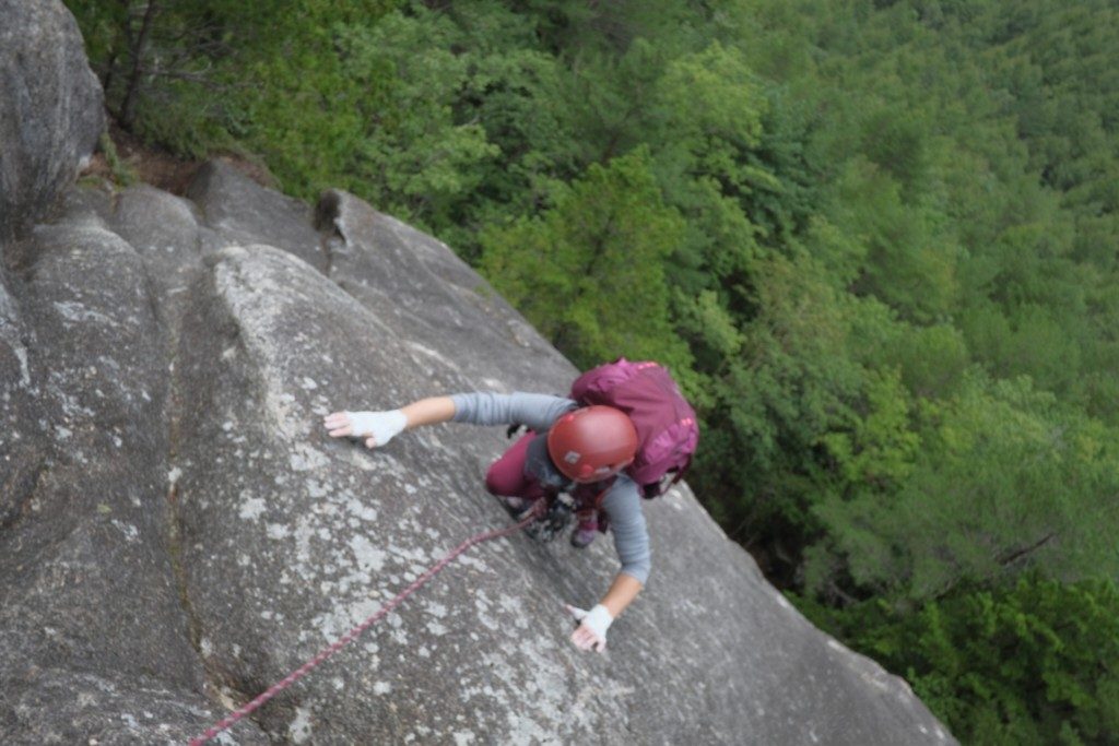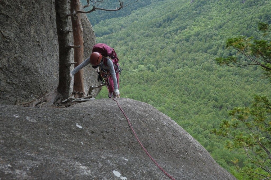下山は徒歩のルートか、近年山頂にリボルトされた支点からの懸垂下降となっています。