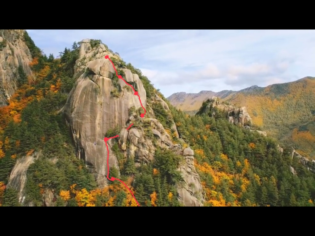 エスケープは4ピッチ目の始点から懸垂下降か4ピッチ目の終了点から山頂へ。