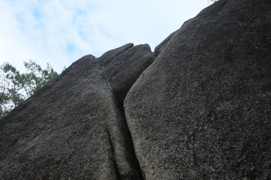 最終第6ピッチ:直上するクラックルートと浅めのチムニールートを選ぶことが出来ます。