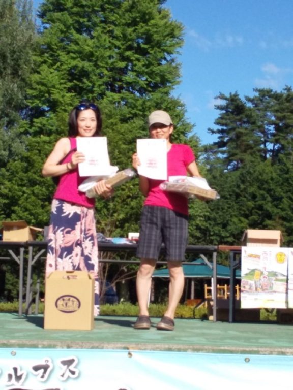 OACのメンバーでは、T田さん3:33 N田さん4:14 K田さん4:37 とアスリートぶりを発揮してました。1名時間制限で完走できませんでしたが、敗因は前夜祭で肉を食べ過ぎたとの事でした(>_<)。下りはダッシュで下山して豚汁頂いて,表彰式N田さんクラス3位入賞の表彰と、大抽選会の明暗で盛り上がり楽しい大会となりました。