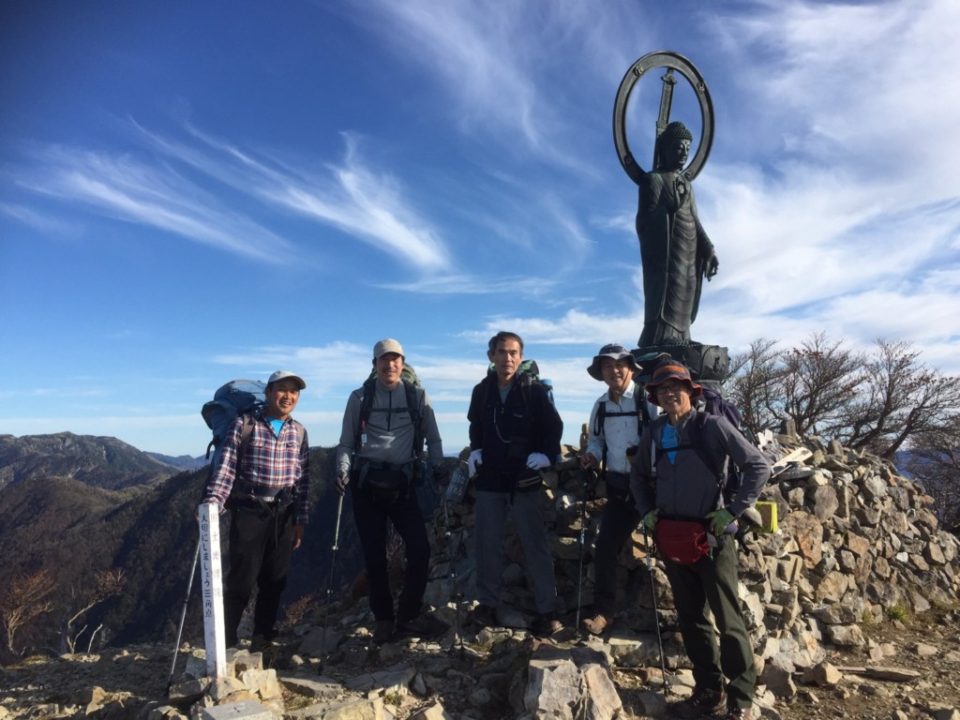 ◎おじさん5人でワイワイとおしゃべり山行でペースが上がらず目標達成は出来ませんでしたが、11月の晴天の大峰奥駈道をじっくり味わいながら歩くことが出来て大満足でした、来年2020に次はどのコースを行くか何処にするか、帰りの車の中で話題でいっぱいでした。