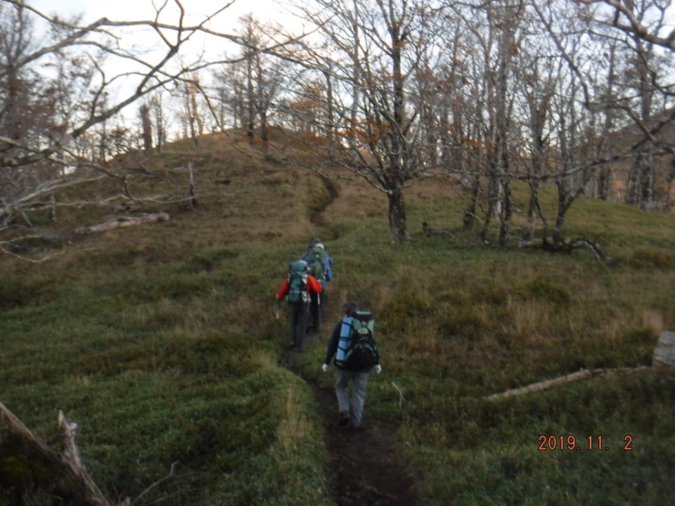 11/2(土) 登山口駐車場(6:00)===古田の森===釈迦が岳山頂(8:00)===孔雀岳(10:00)===鳥の水(10:20)===楊子ノ宿避難小屋(11:50)(12:20)===1694mピーク(14:00)===楊子ノ宿避難小屋(15:30)