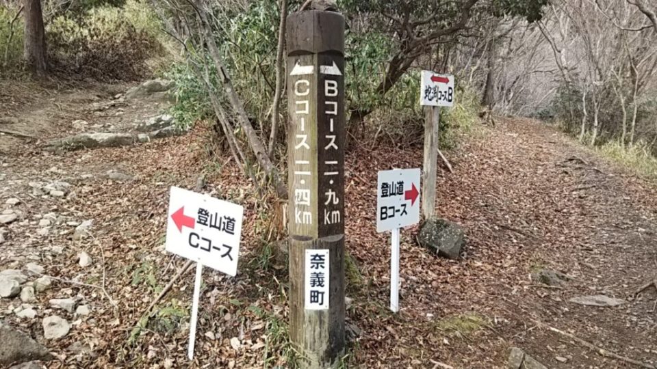 蛇淵の滝Pは1,2,3とあった。手前の第3駐車場に停めて9:10歩き出す。トイレは第2駐車場の横に有り。 なだらかな坂を歩き、暫くするとBとCコースの登山口に出た。登りはCコースを選択。 暖冬により雪はなし。当日も快晴で暖かく歩くとすぐに暑くなった。