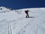 - 2020/03/09柳川瀬公園4:30出発、妙高高原IC経由し妙高休暇村より100m先の登山者駐車場へ8:30着、スキー板を装着し駐車場を横切りゲレンデへ出て50m程下りリフト乗り場をかすめてその先の林道に降り、急斜面の藤巻尾根に取り付き(標高810m)9:15頃シールを装着し藤巻山(945m)を経由し神奈山(標高1908m)へと向かう、途中藤巻山の下を10:30頃通過し、見晴らしを楽しみながらブナ林の中を順調に登り、神奈山(標高1909m)手前1490mの揺るかかな斜面に到着(12:40)し、そこで快晴・無風の中景色を楽しみながら食事し13:15頃滑降開始、ブナの疎林の中快調滑る事が出来ました。しかし標高が下がると雪質が悪くなり少し苦戦しました。最後の藤巻尾根の下り急斜面は木も