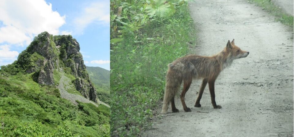 下山もヒグマに注意しながら進む。下山は冷水コースを下山する。こちらも花は無いがなだらかなので、登りはこちらの方が良かったかもしれない。車で林道を帰るが、暑そうにベロを出したキタキツネに何匹か逢い、この高温はつらいだろうにと思った。湯の沢温泉で汗を流し、天気予報を見ると、雨の降り出しが早まっていることが分かった。