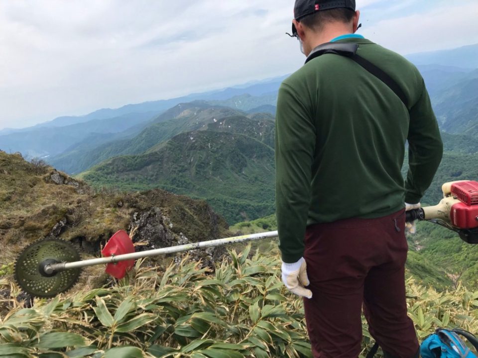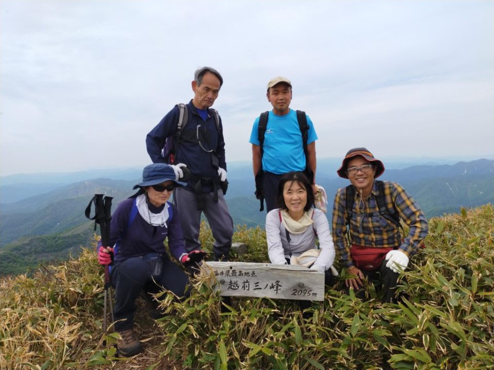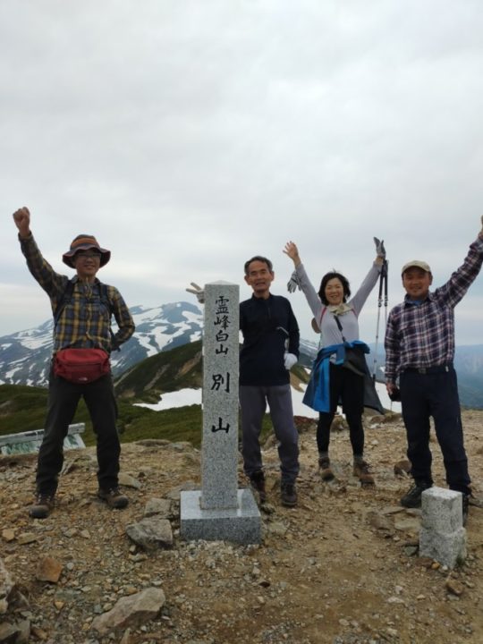 2日目、別山へ登頂。風が強く寒かったです。下山に向け小屋を片付け出発。地元の山岳会の方々が登山道整備で草刈りをされていて感謝。途中続々と登って来る人とすれ違う人気のある山でした。