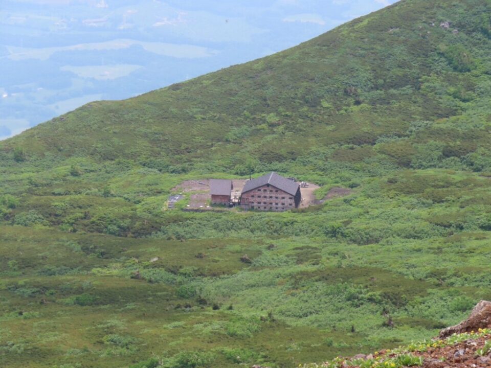 車で40分ほどで馬返し登山口へ。標高600mから避難小屋のある八合目(1800m)まで新道を直線的に登る。3合目から8合目までずっとヤマオダマキが咲いていた。避難小屋には豊富な水場あり。