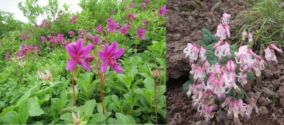 三峰山を越え、稜線を歩いていくと所々に花畑があり、エゾツツジやタルマエソウなどの北海道の花やコマクサも見ることができた。