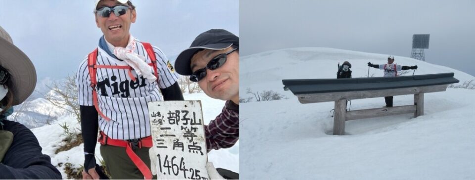 昨年登頂できなかった部子山に1年越しで登頂できて本当に良かった。1,500mにも達しない山だが、積雪の多さが加わることでとても素晴らしい山だと実感した。タフなコースでしたが、メンバーの皆様に助けられやり遂げることができ感謝です。体力が年々衰えていくが、この様な山行を続けていきたい。