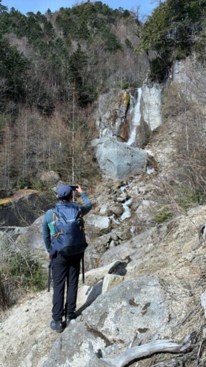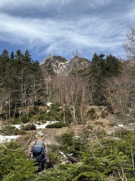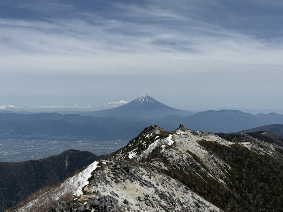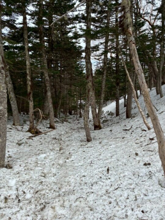 ほとんど夏道ルートと一緒でしたが、残雪があるところは夏道ルートからそれることがあり、私自身ルーファイに迷うところがありました。CLのN島氏が先導してくれて、必要な装備を装着する場面で指示をしてくれてとても心強かったです。夜叉神峠コースやドンドコ沢コースよりも中道コースの残雪が多く、踏み抜きが大変でしたが踏み抜いたときの対応について学ばせて頂きました。ご一緒させて頂きましたお二方には感謝です。ありがとうございました。