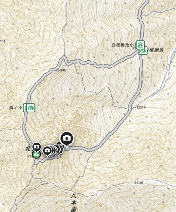 写真マークのある辺りがバッドレス四尾根