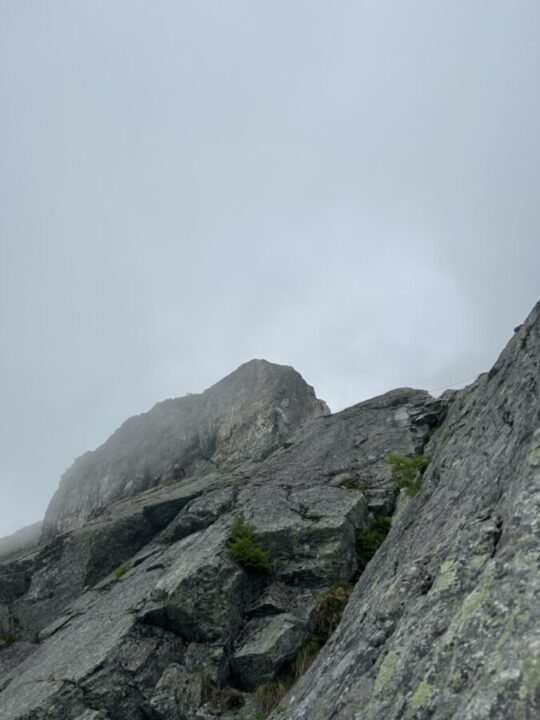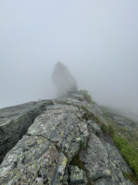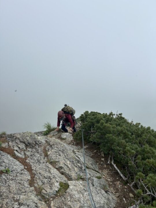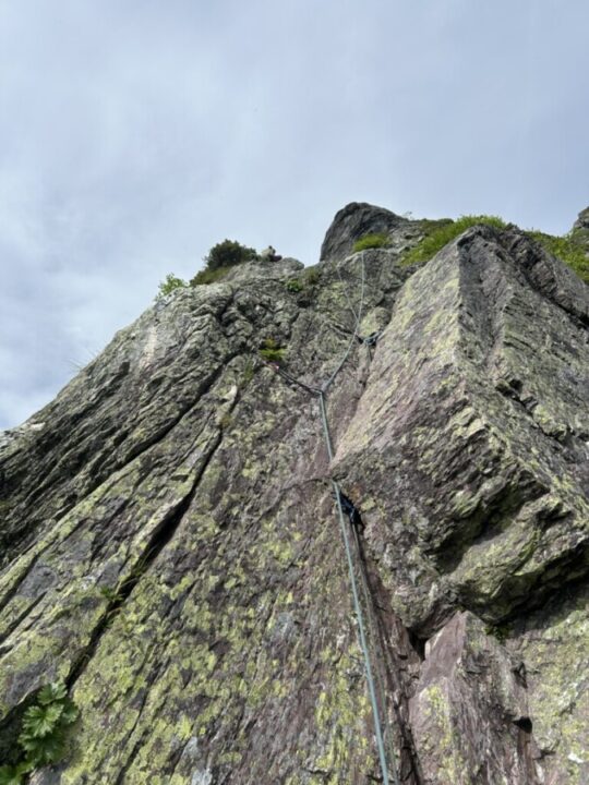 カンテから行ってリッジに乗った、最後のトラバースは反対側崩壊してたし、途中岩が途切れていて渡らないといけなくて怖かった。