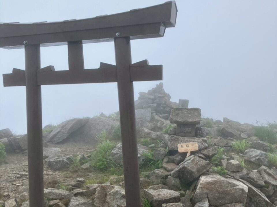 本隊は丸森尾根を登ります。結構大変でしたね。標高差はあるし、湿気って暑いし、雨は降ってくるし、ガスって視界は悪くなるし、主稜線に出たらよろけるほどの風だし、命の水が一升もあって重たいし。ん?最後のは自分のせいか。