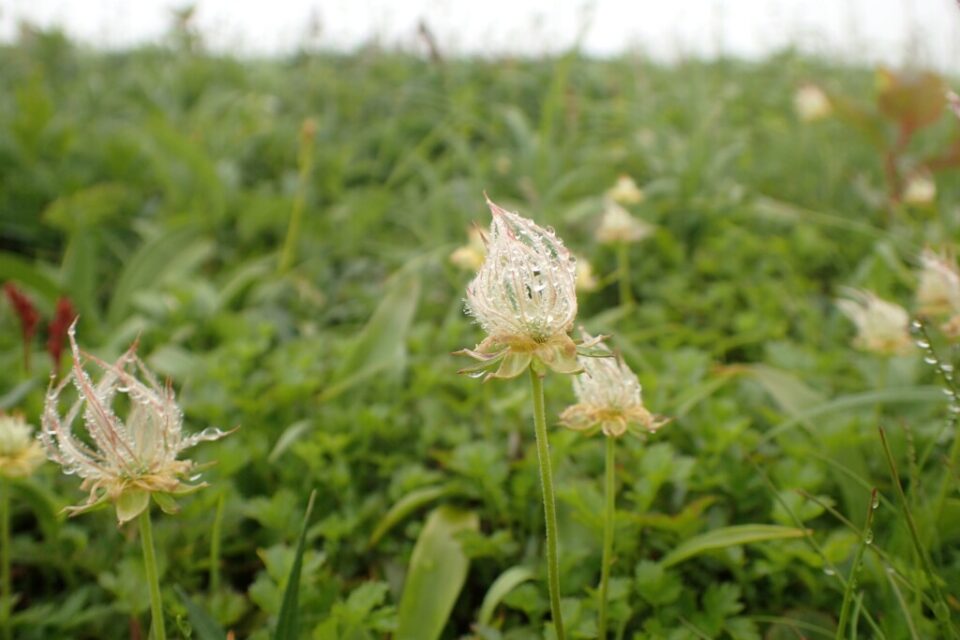 花の写真を撮っているということは、これくらいの頃は、それほど悪い天候ではなかったようです。ほぼずっとガスに巻かれていた気がしましたが、そんなことはないようで。人間の記憶なんてのはいい加減なもんです。私だけかしら?