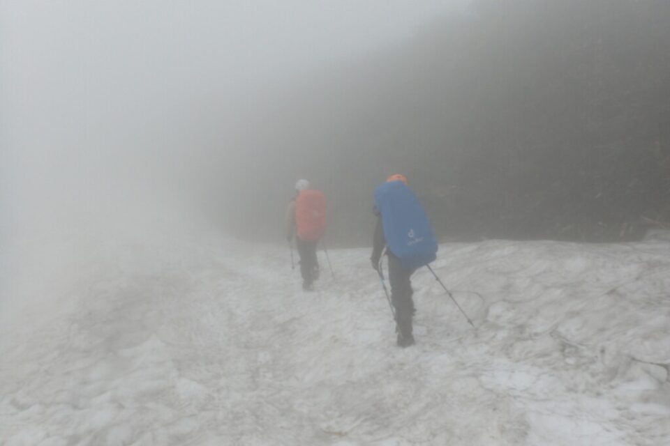 「夏道を見つけてから進め」と言われたけど、このガスだぜ。夏道なんか見えっこないよ。