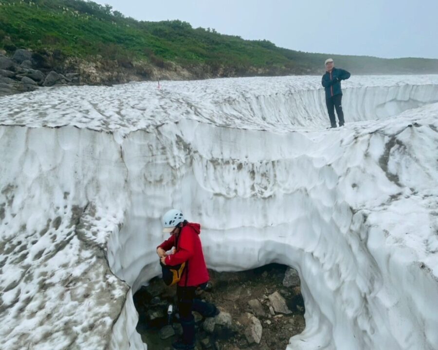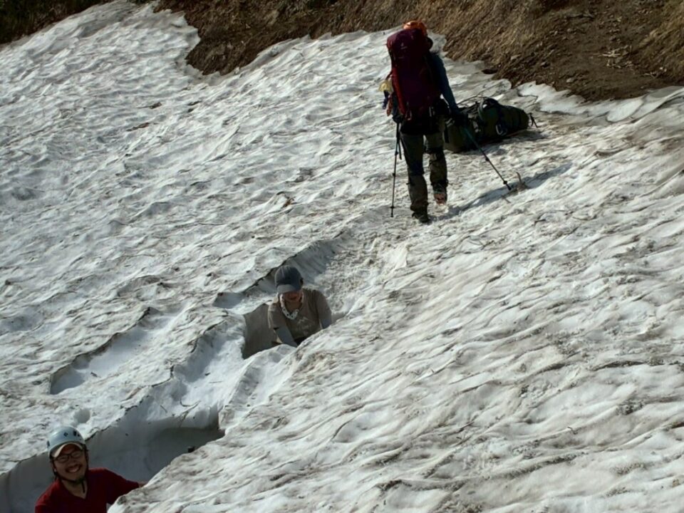 縦走路の雪渓よりも、水場が一番危なかった。滑っちゃったら丸腰じゃ止められないよねー。