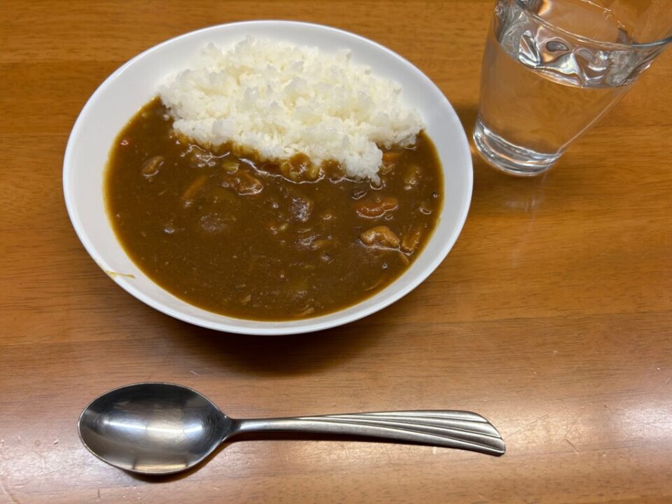 名物蛭カレー。とてもおいしいカレーライス。ご飯はおかわり自由ですが、ルーは始めの一杯のみです。