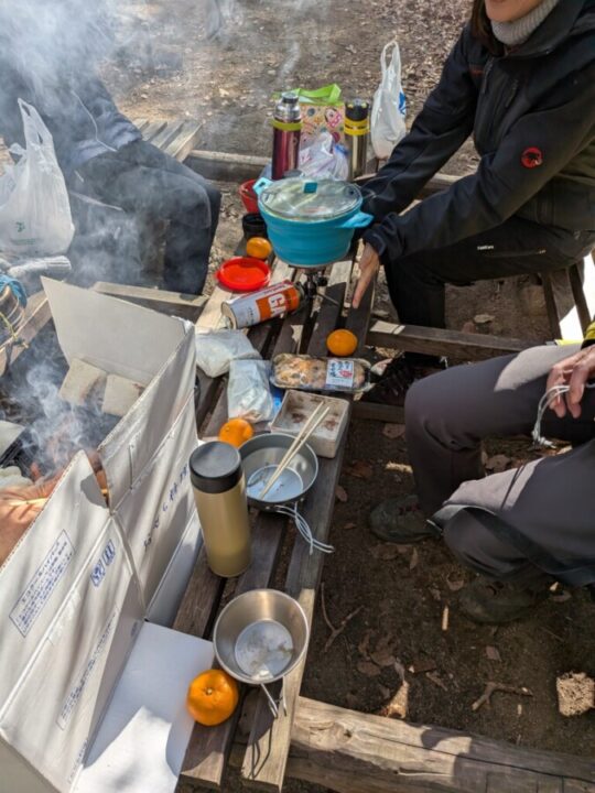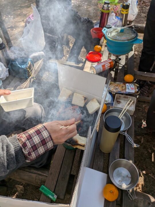 昼食は鍋で、今回は参加出来なかったM淵さん手作りの味噌を使ったお鍋、N島さん持参のくるみ餅、M淵さんのお餅を美味しく頂きました。