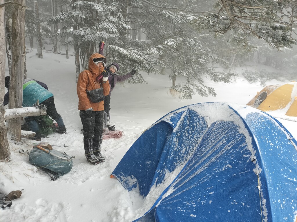 赤岳鉱泉に到着すると、テン場は前回より空いていた。やはりこの寒波で山行を諦めた人が多いのだろう。周りを見るとアイス装備の人が多い。テントを設営して一休み。初日はY澤さんのリクエストに応えて大同心ルンゼへ向かう事にした。