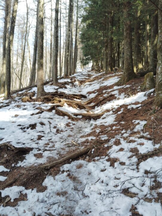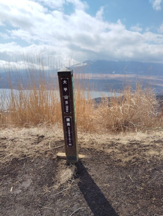 ホテルの朝食をいだだき7:15に出発した。富士山が雲なくきれいに見えていた。富士浅間神社でお詣りし、用水路脇の小道を通って138号線を山中湖方面に進み、忍野へ山道に入った。自衛隊の演習場横を歩くのだが、忍野八海の場所が分からないまま花の都公園に着いた。公園を通過して大平山登山口へ車道を登って行った。 右手に山中湖が少し見え出し、まっすぐ尾根道を進む。長池山、飯盛山と山頂を踏み、長い階段を登って大平山に着いた。樹木がなく山中湖と富士山が見えた。その後もいくつかの山頂を経て平尾山へ。平野集落へは急な坂がなく歩きやすい下りだった。 平野から旭日丘バス停までの1時間程の車道歩きが長く感じられた。15:40にバス停に着き、16:08の御殿場駅行きのバスに乗った。バスを待つときには雪で御殿場駅では雨に変わっていた。