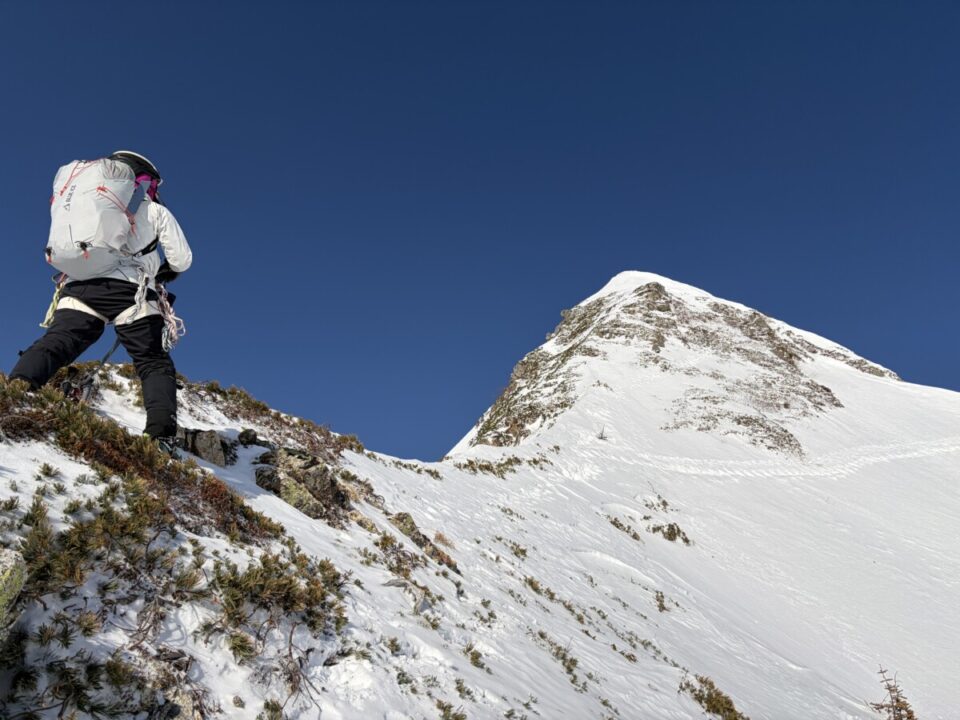 その後は小さな雪庇を越えるのだが、アックスの使い方が上手くいかず、まだ技術が足りないなと実感した。