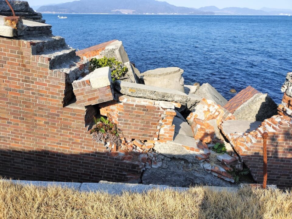 次に第二砲台跡地に着く。こちらは大阪を向いた海岸線沿いにあるせいか崩壊がひどく、とても中には入れそうにない状態だった。